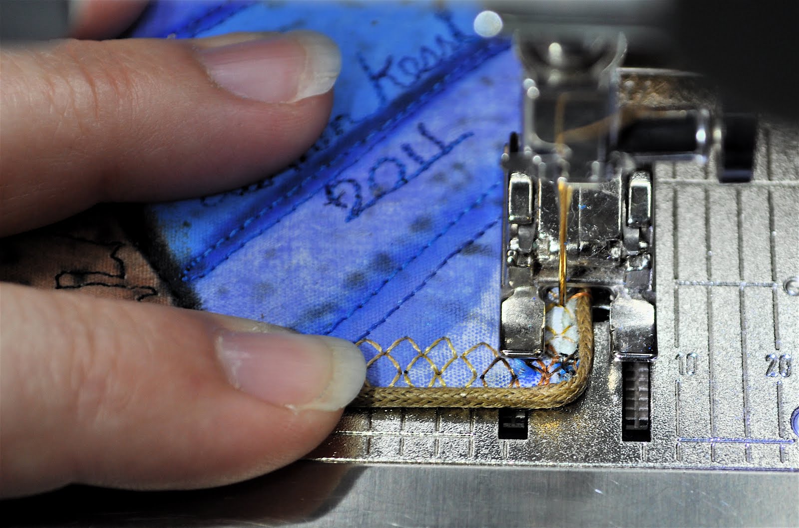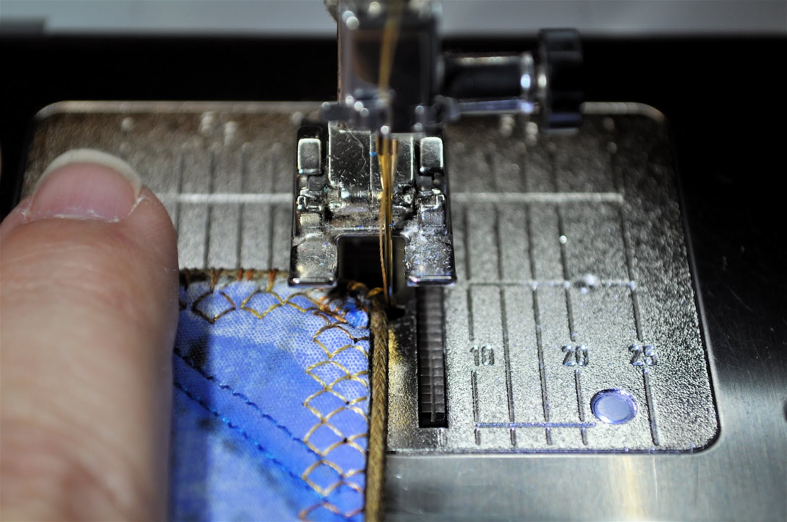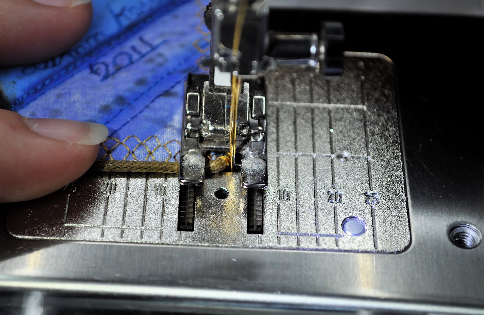 Lu Ann, thanks for the neat tutorial/pictures for the edge treatment. Terry Grant (http://andsewitgoes.blogspot.com/2007/11/another-beetle-and-little-toot-toot.html) and Carol Ann Waugh have good instructions for this type of finish, also. I have not tried using the wide decorative stitch inside the cord--looks neat!