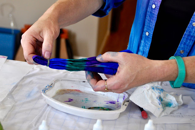 Dye Na Flow paints are dripped onto the peaks and valleys